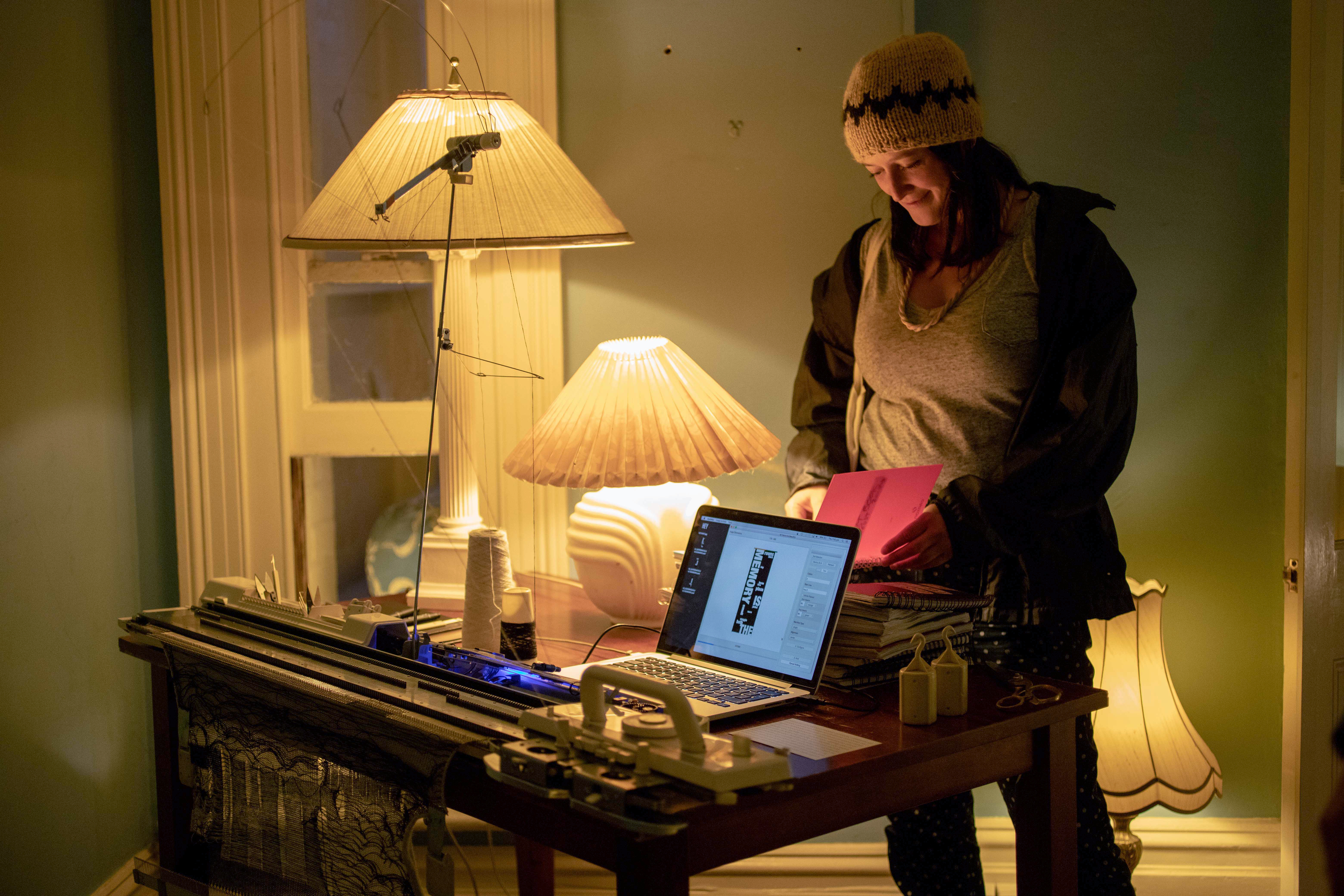 A four-day performance using a knit typewriter, time-served wool blankets from the hotel and words from guest books to produce an on-site textile installation. The hacked knitting machine uses open source hard-and software to have real time control over the needles and knit digital patterns. The performance and product, tangible and intangible, celebrated the memory of Brooklyn Arts Hotel through an expanded relational and material practice.